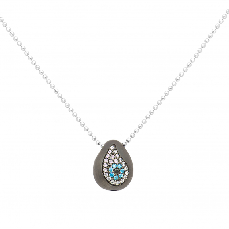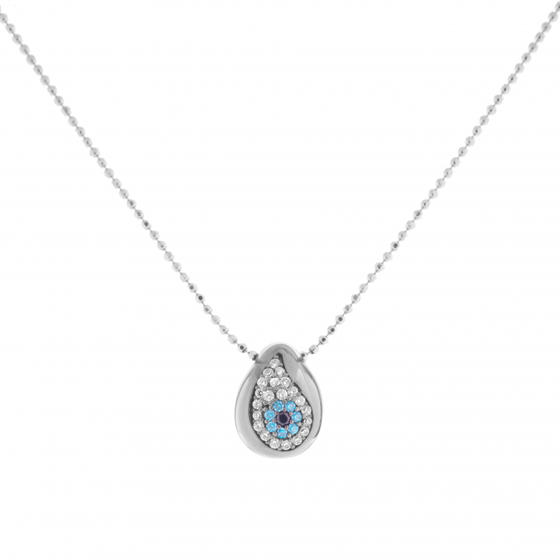 Κολιέ ασημένιο κοντό με μάτι λαχούρι σε λουστρέ και ματ επιλογές!